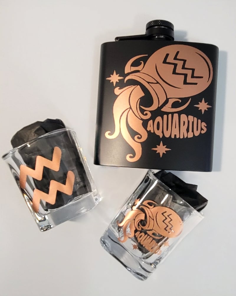 Aquarius Zodiac Flask Set